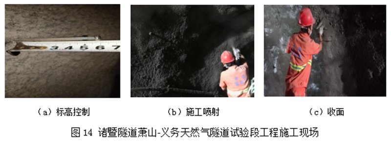 2019年10月,完成了诸暨隧道萧山-义务天然气隧道试验段工程,采用了韧性混凝土对天然气隧道初期支护上进行喷射支护,替代原二衬结构,防止隧道上部掉块情况出现。