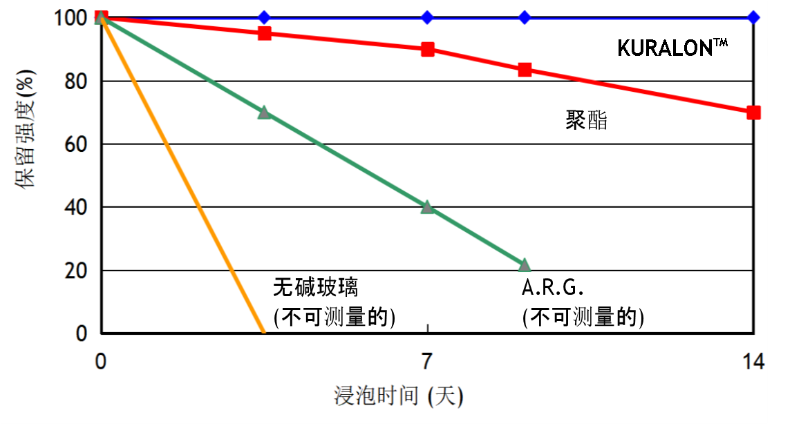 KURALONTM 具有良好的耐化学性,特别表现出良好的耐碱性。